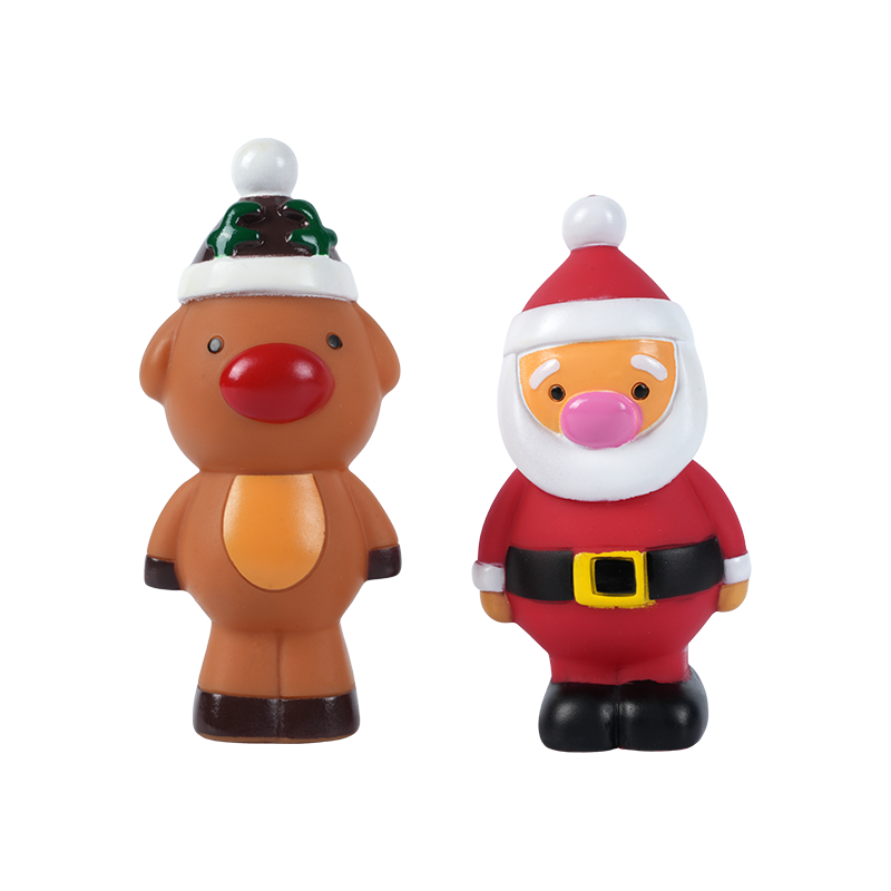 Papá Noel aparece en forma de peluche con una barba blanca y esponjosa y un chirriador escondido dentro de su vientre. Los muñecos de nieve tienen sombreros de copa y ojos de botón que se arrugan al presionarlos. Los renos tienen astas suaves cosidas de forma segura para tirar. Una línea navideña de juguetes chirriantes para perros bien diseñada captura el espíritu navideño y al mismo tiempo mantiene la durabilidad para un juego entusiasta. La nariz roja de Rudolf a menudo contiene un chirrido adicional, lo que recompensa a los perros que descubren esta característica festiva.